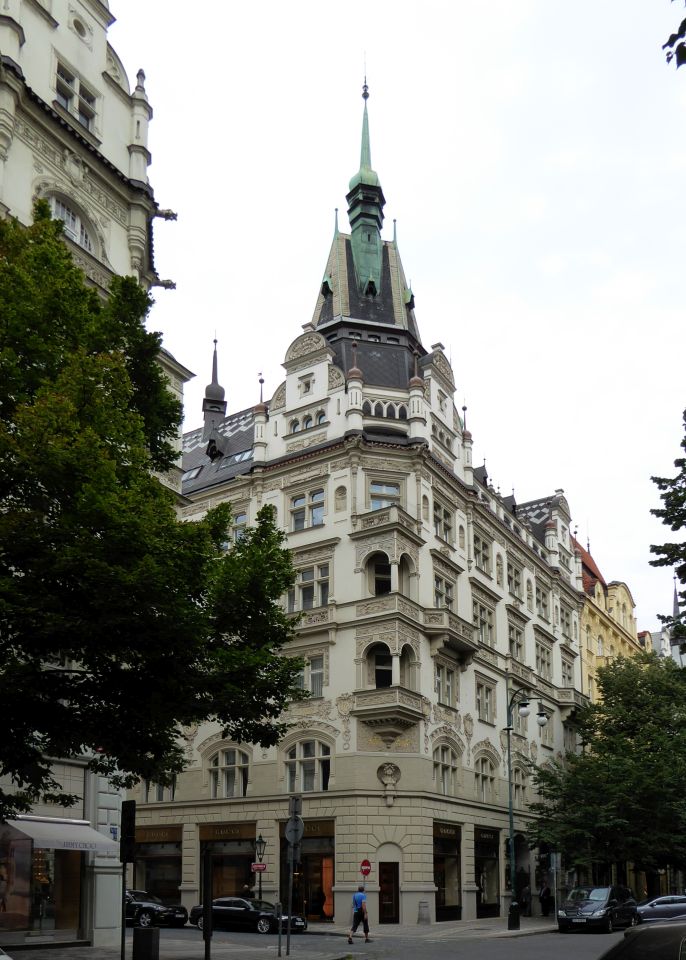 Von der Metrostation gehen wir rechts durch die Kaprova zum Franz Kafka Platz, an der St.Nikolaus-Kirche vorbei bis zur Pariser Str. - Pařížská, unserem Ausgangspunkt.