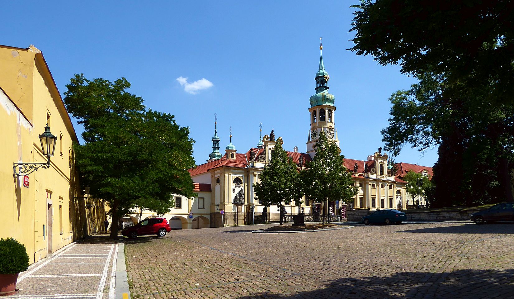 Wir biegen links in die Černínská ein, die in Richtung Loreto-Platz führt. An der Platzeinmündung kommen wir links zum Kapuziner-Kloster mit der Engelhaften Jungfrau Maria-Kirche. Gegenüber ist der Eingang zum Garten des Černín-Palastes den wir, soweit er offen ist, auch besuchen.