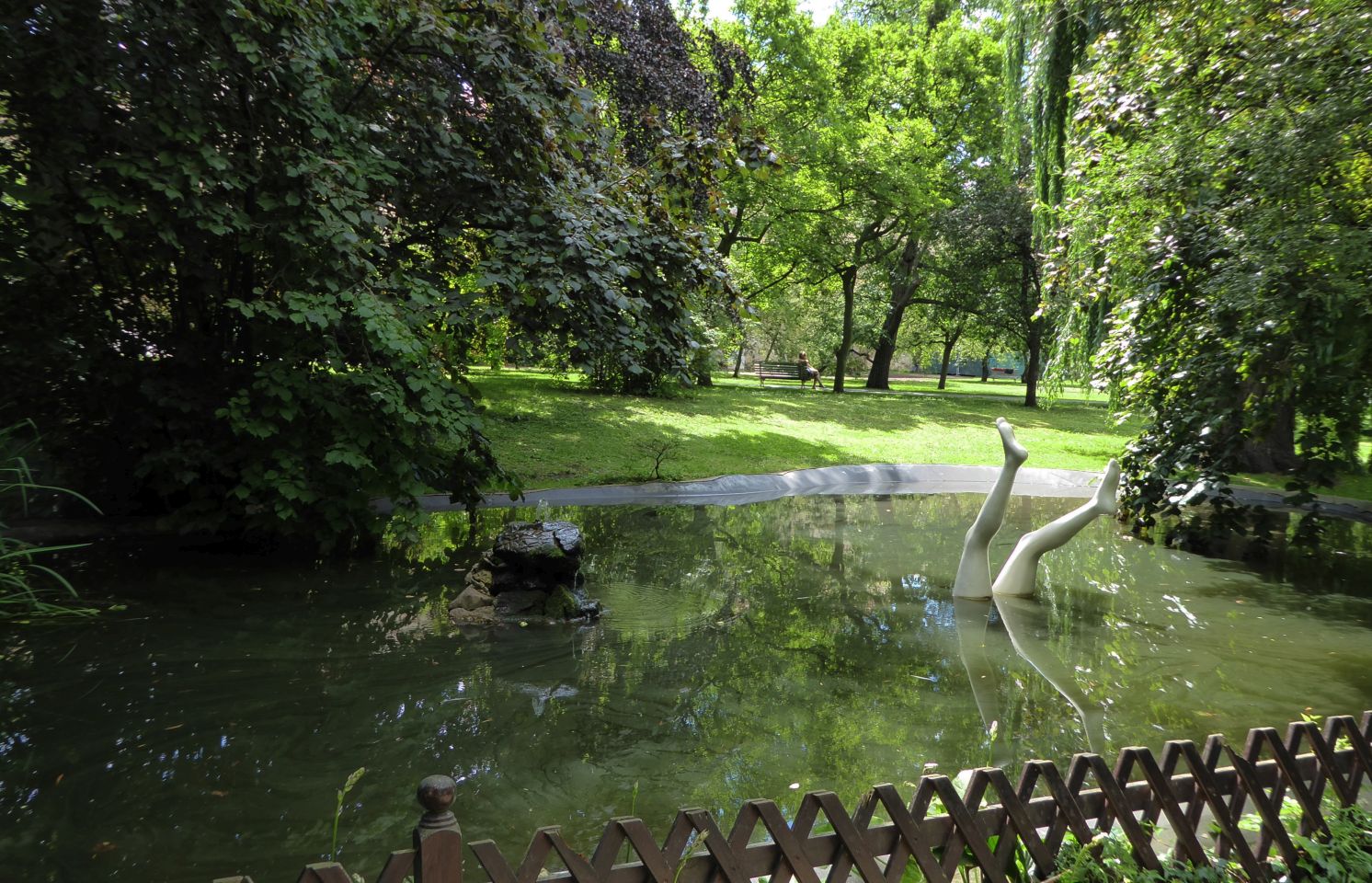 Im Hof der Ziegelei steht auch eine Statuengruppe des tschechischen zeitgenössischen provokativen Bildhauers David Černý (engl.).